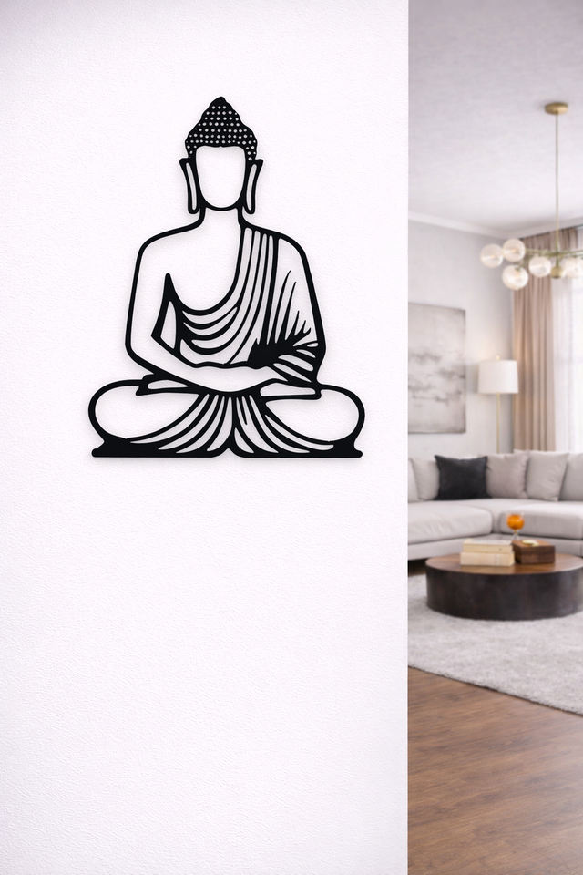 Cette décoration murale représente un Bouddha assis en position de méditation, symbole de paix intérieure, de sagesse et d’équilibre. Son design minimaliste et ajouré met en valeur les lignes du corps et le drapé de la robe, créant une atmosphère zen et harmonieuse.