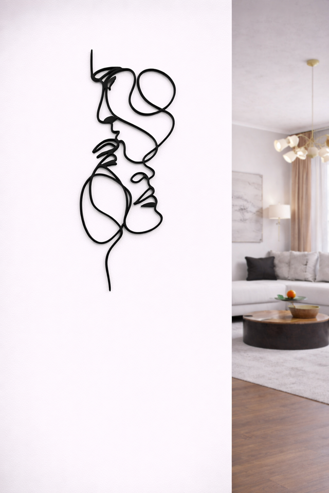 Cette décoration murale minimaliste représente un homme et une femme dessinés en un seul trait continu. Le style épuré et fluide évoque l’amour, la connexion et la complémentarité, tout en apportant une touche artistique moderne à votre intérieur. Le contraste du noir sur le mur crée une présence élégante et intemporelle, idéale pour une décoration sobre et raffinée.